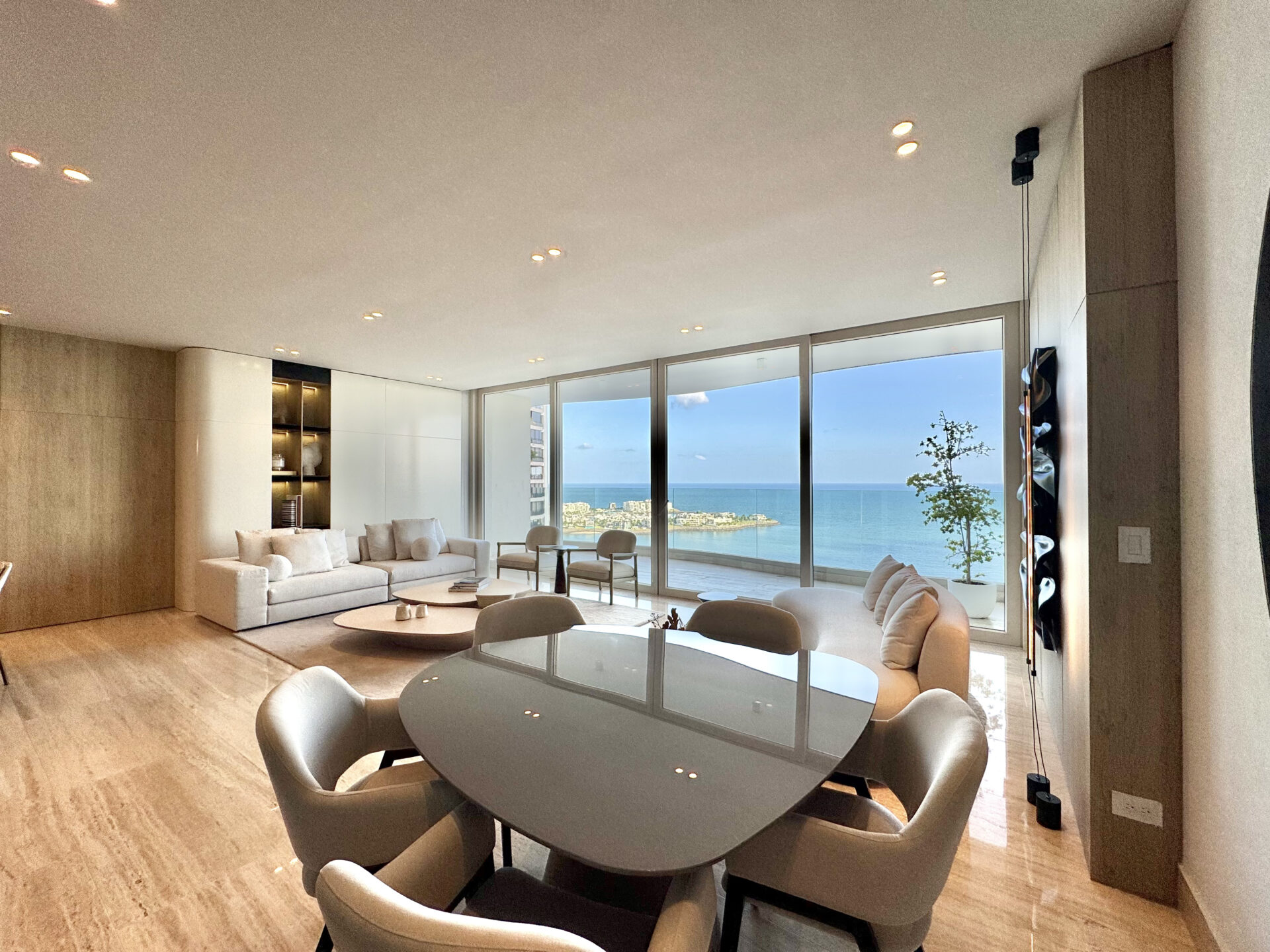 Luxurious and unique skydeck with magnificent views of the sea, open-air VIP cinema, sushi bar, infinity pool, spa and tanning area, meditation and yoga room, and meeting room and offices.