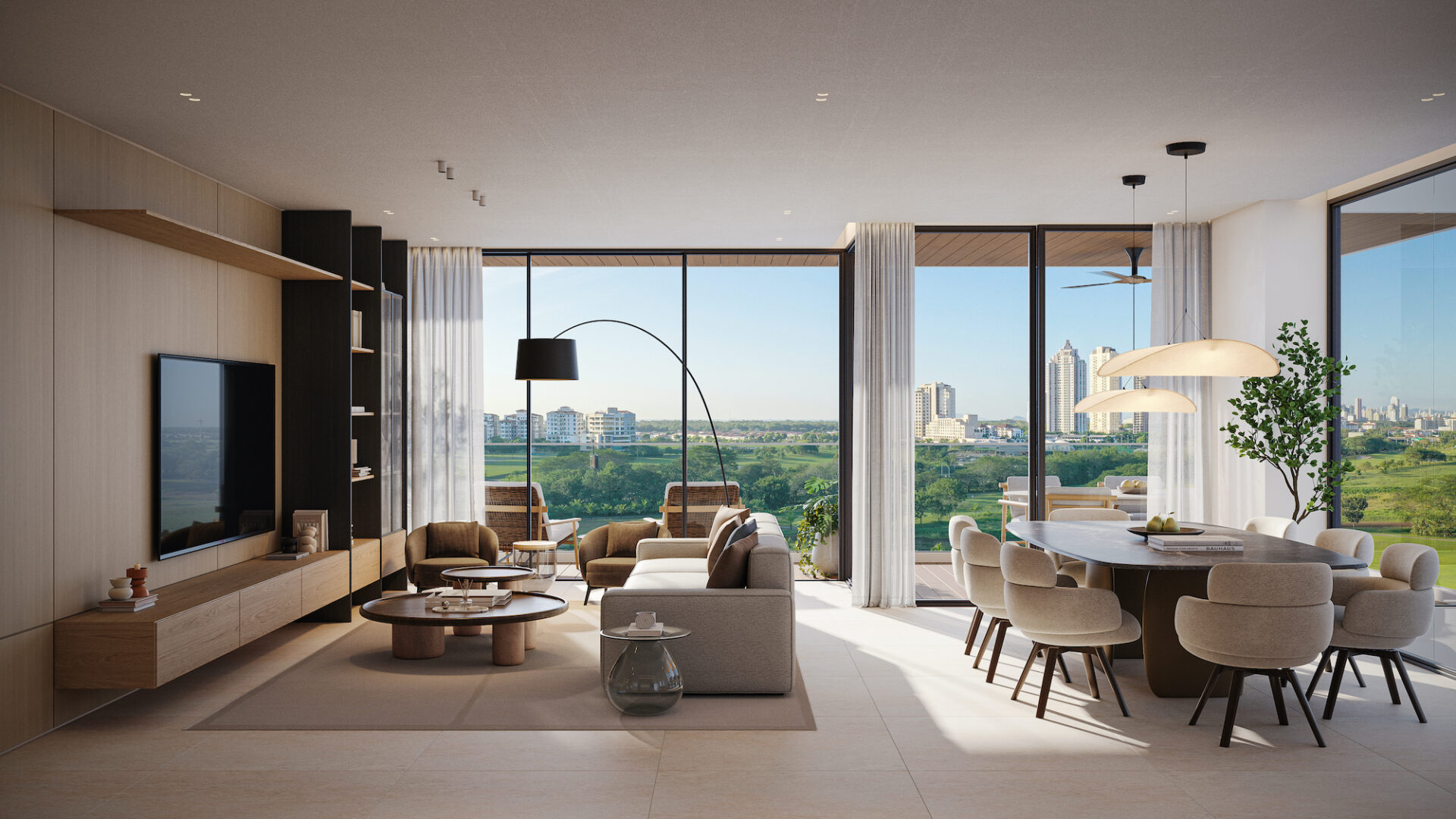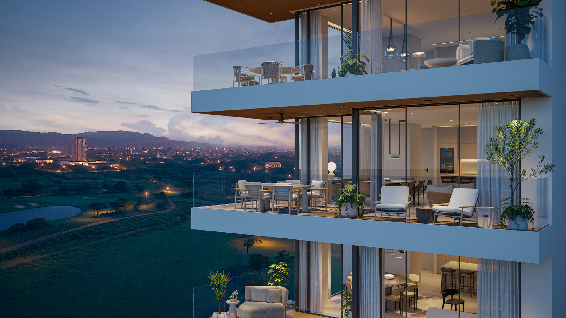 ARENA ofrece apartamentos con metrajes que van desde 217 m² hasta 271 m², distribuidos en amplios espacios que incluyen sala, comedor, den, terrazas, cocina, lavandería, cuarto y baño de servicio, baño de visitas, recámara principal con walking closet y baño, además de recámaras secundarias con sus respectivos baños. Cada residencia ha sido diseñada para brindar amplitud, funcionalidad y una experiencia de vida sofisticada, con vistas privilegiadas hacia la cancha de golf de Santa María y el entorno verde que rodea el proyecto.