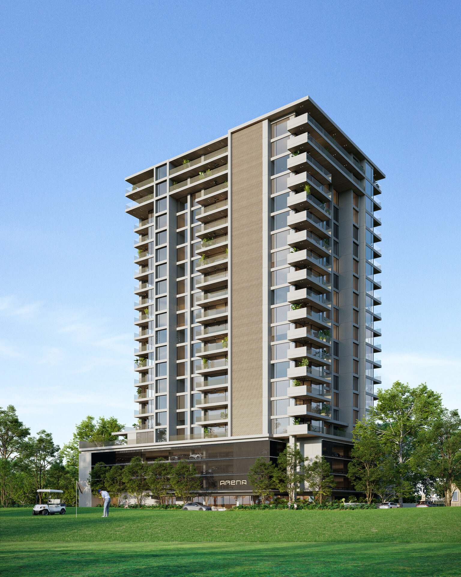 La torre ha sido diseñada para ofrecer una experiencia residencial exclusiva y segura, dentro de una de las comunidades más distinguidas de Panamá, con acceso al campo de golf de 18 hoyos, club house de lujo, restaurantes gourmet, canchas de tenis y extensas áreas verdes que caracterizan a Santa María Golf & Country Club. ARENA redefine el concepto de vivir bien, combinando diseño de vanguardia, ubicación estratégica y un entorno natural único para quienes buscan más que un hogar: una verdadera experiencia de vida.