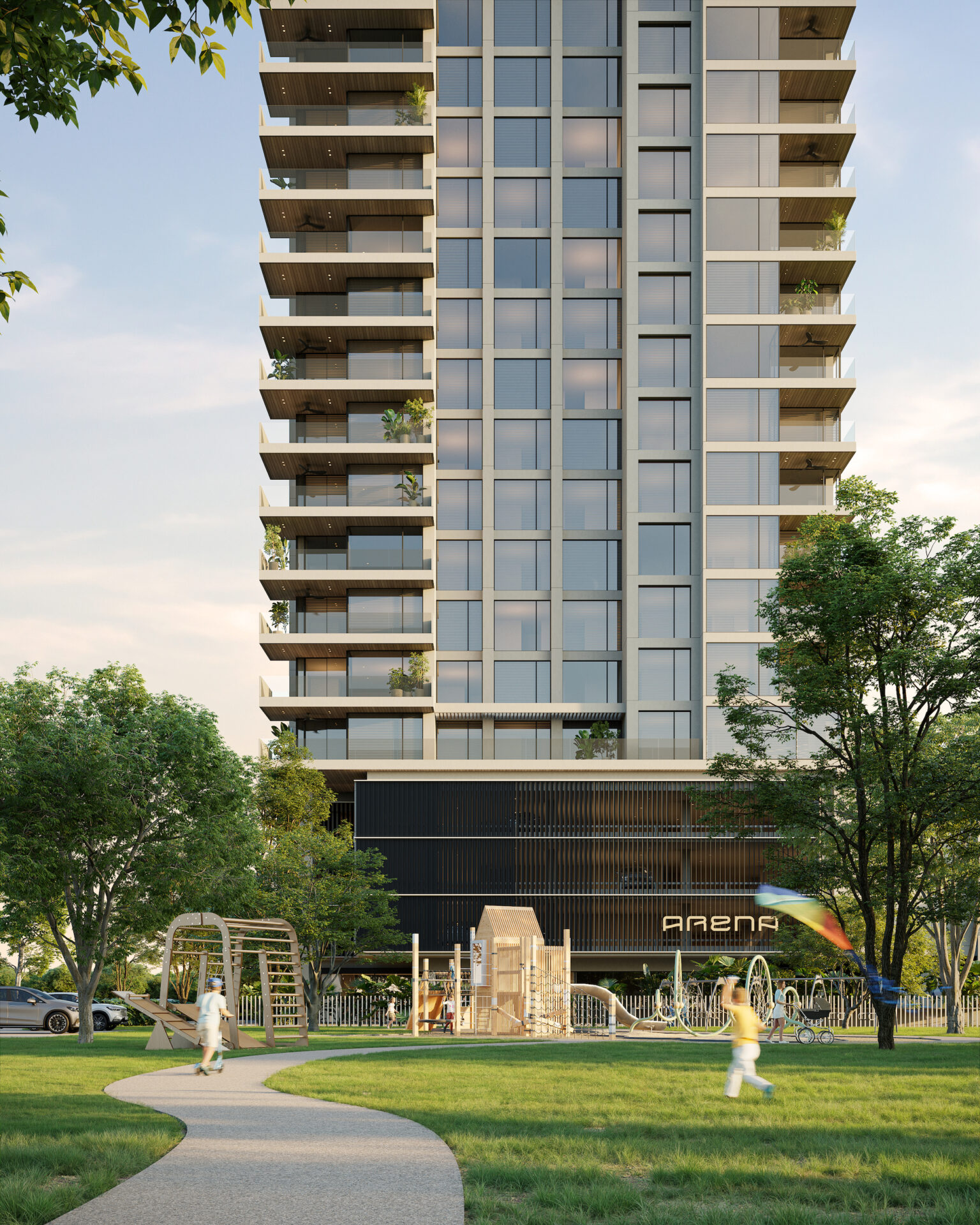 El diseño arquitectónico de ARENA prioriza la armonía con el entorno, ofreciendo acceso directo a un parque comunitario y una integración natural con el paisaje, lo que permite disfrutar de un estilo de vida al aire libre en un ambiente de total privacidad y tranquilidad.